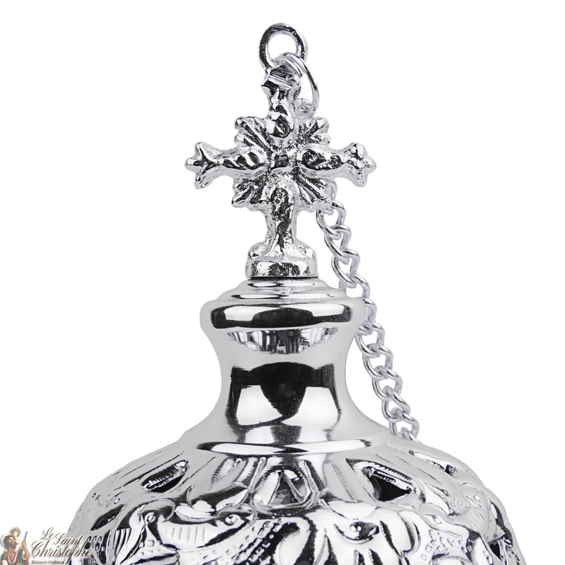 Encensoir argenté sculpté avec croix - Hauteur: 18 cm