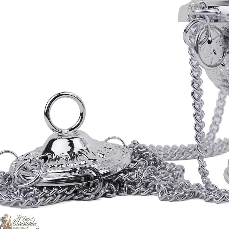 Magnifique encensoir argenté avec croix à suspendre. Sculpté et réalisé entièrement à la main