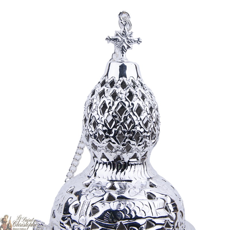 Encensoir argenté sculpté avec croix - Hauteur: 26 cm