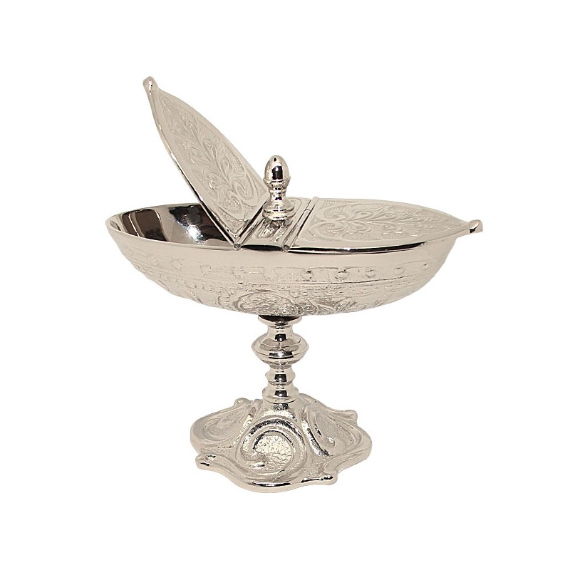 Navette Recipient sculpté pour encens avec deux couvercles - couleur argent
