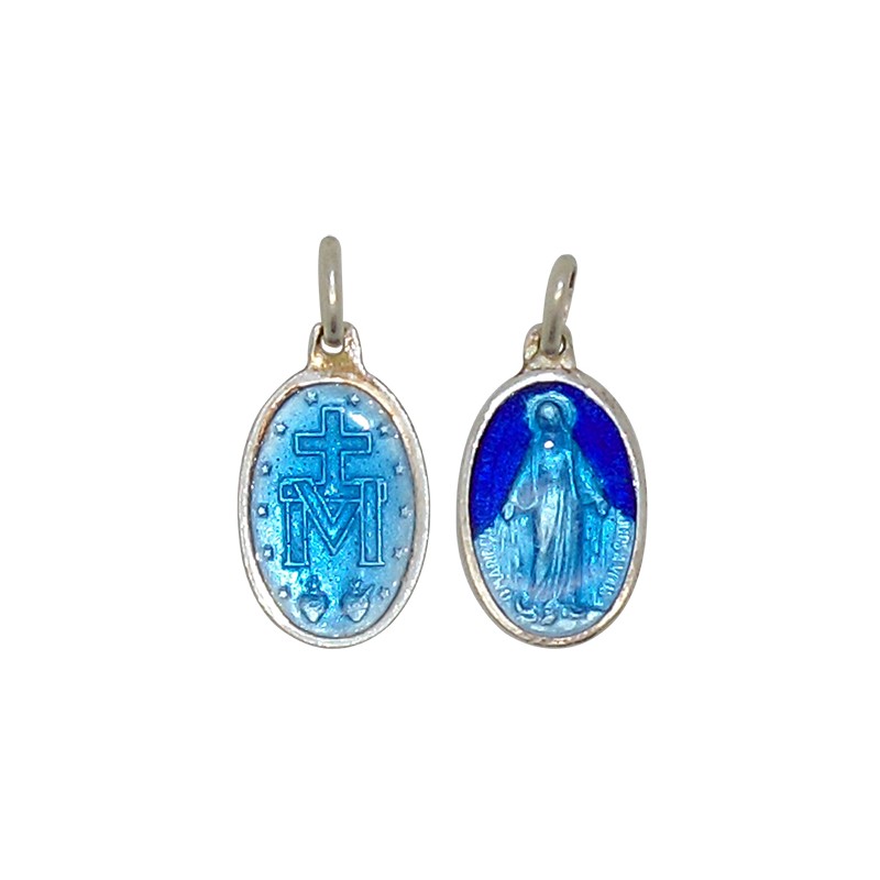 Médaille de la Vierge Miraculeuse bleu 15 mm - Argent 925