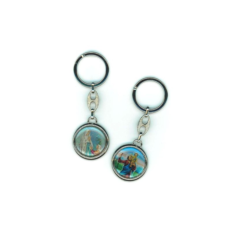 Porte-clés Saint Christophe et l 'Apparition de Lourdes - Rond