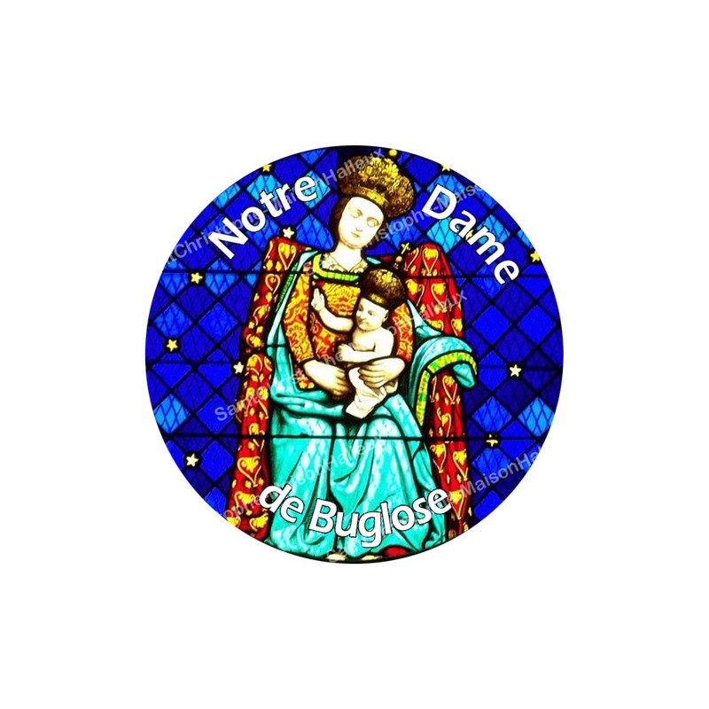 Autocollants ronds - 45 mm - "Notre-Dame Buglose 2 blanc".
