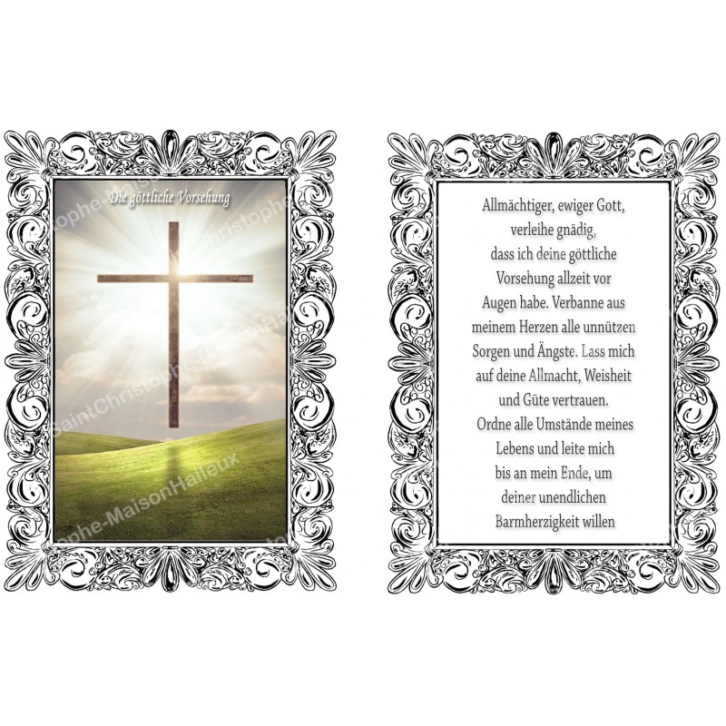 L'adesivo raffigura la Santa Croce radiosa di luce, con una preghiera dedicata alla Divina Provvidenza, il tutto racchiuso in una bella cornice decorata.