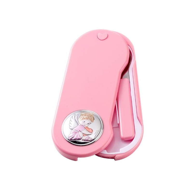 Scatola angelo con cucchiaio e forchetta per bambino - Rosa