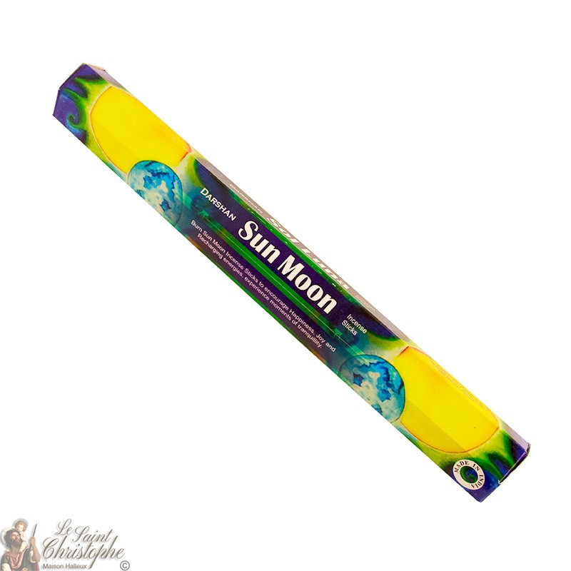 L'incenso Sun Moon è dedicato, come indica il suo nome, al sole e alla luna. Il suo piacevole profumo promuove momenti di gioia e felicità e crea un'atmosfera serena e pacifica, favorevole alla meditazione e all'introspezione. È raccomandato nell'esoterismo per purificare i luoghi e ricaricare di energia gli oggetti, i luoghi o anche le persone. Grazie alla sua composizione, questo incenso è benefico per equilibrare le carenze o le eccedenze e ritornare ad uno stato stabile tra le forze Yin e Yang.