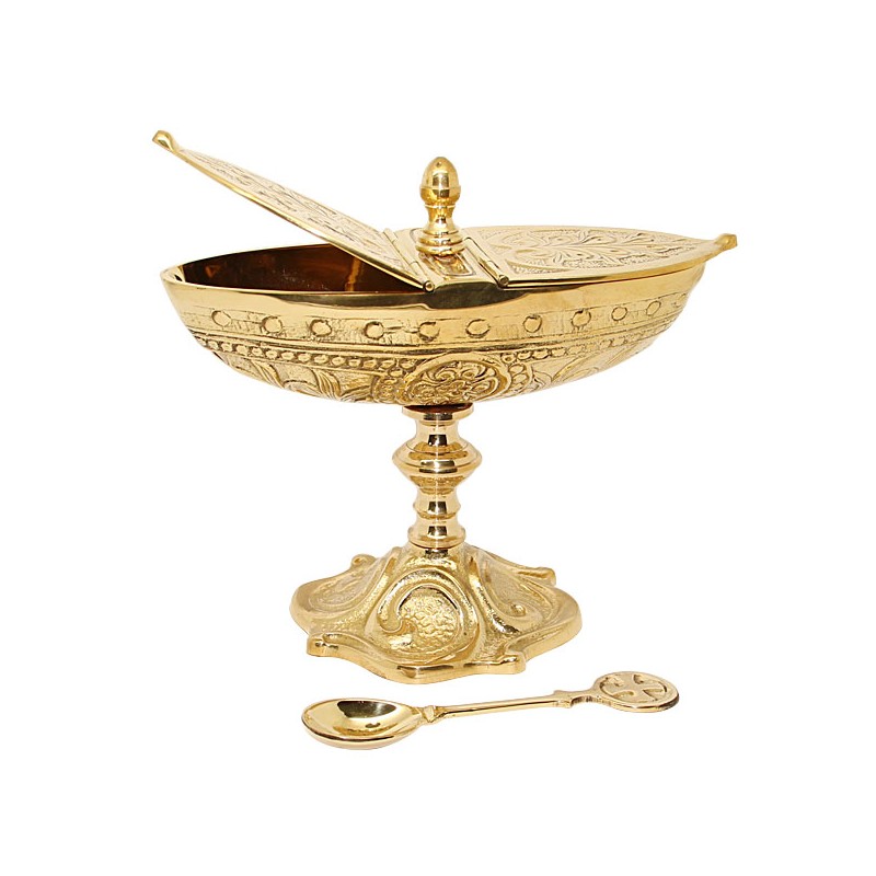 Navetta di incenso di rame mano-intagliata con un cucchiaio.