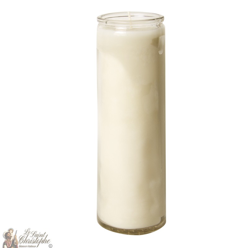 Una candela in un contenitore di vetro solido con un tempo di combustione di circa 150 ore. La paraffina bianca, che può avere toni crema e avorio, scorre all'interno del contenitore, dando un effetto fotoforo quando brucia, la fiamma che brilla attraverso il sottile strato di cera.