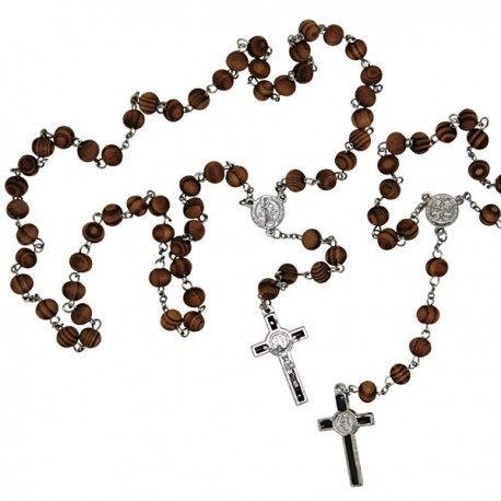 Rosario in legno marrone con San Rita e Padre PioDiametro perle: 9 mmLunghezza: 46 cmPeso: 25 grCodice: 5020025