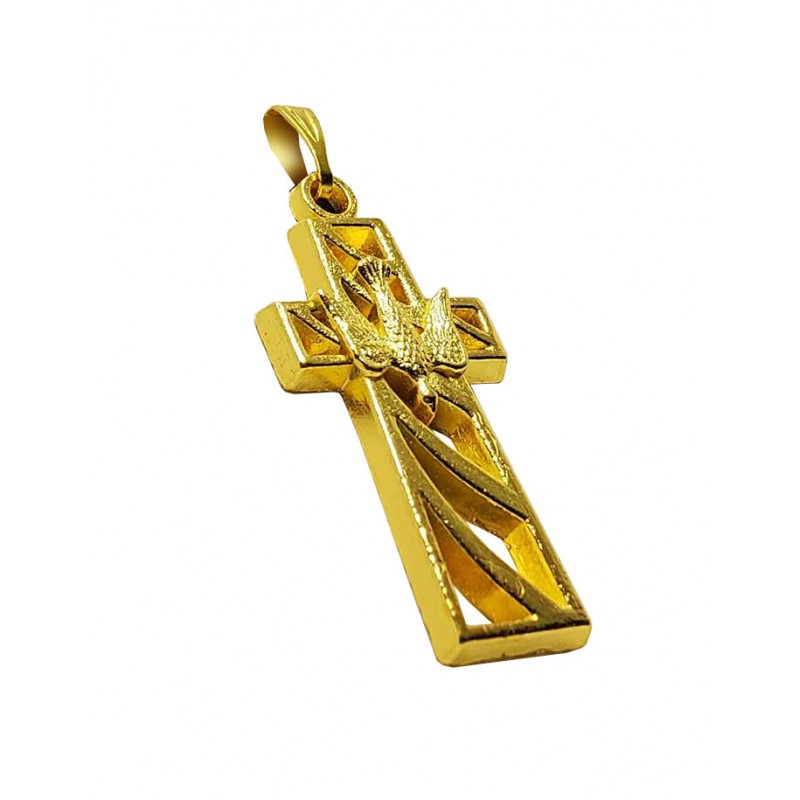 Ciondolo a forma di croce con il simbolo dello Spirito Santo. Il ciondolo è realizzato in metallo pregiato placcato oro. La colomba dello Spirito Santo e la croce sono in stile moderno.