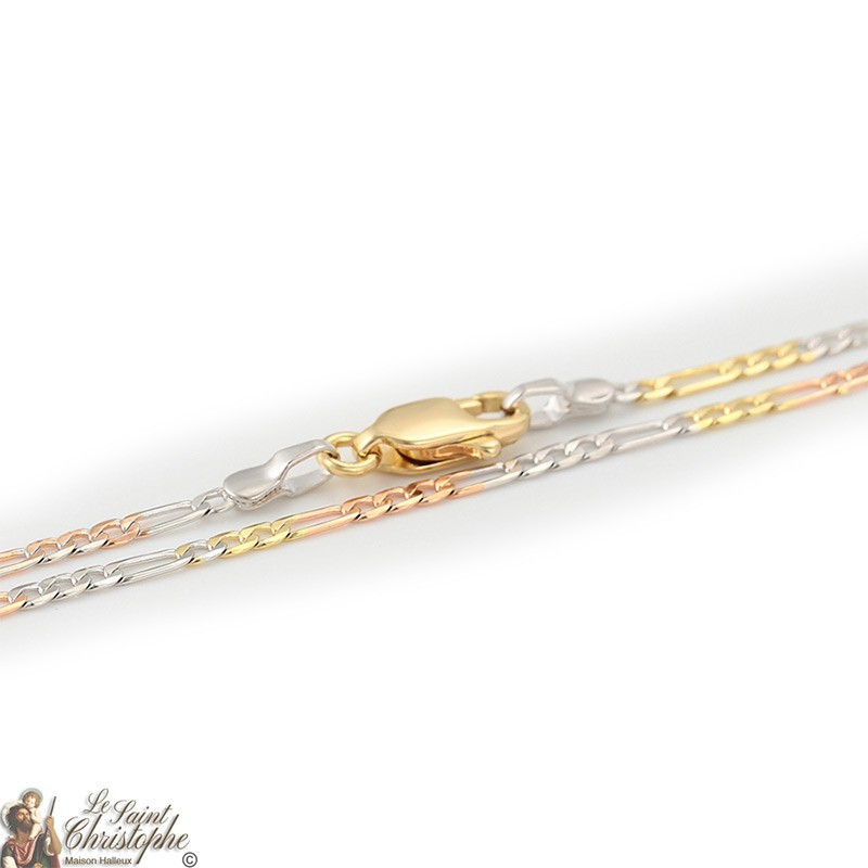 Catena Figaro con maglie in oro, oro rosa e argento 60 cm