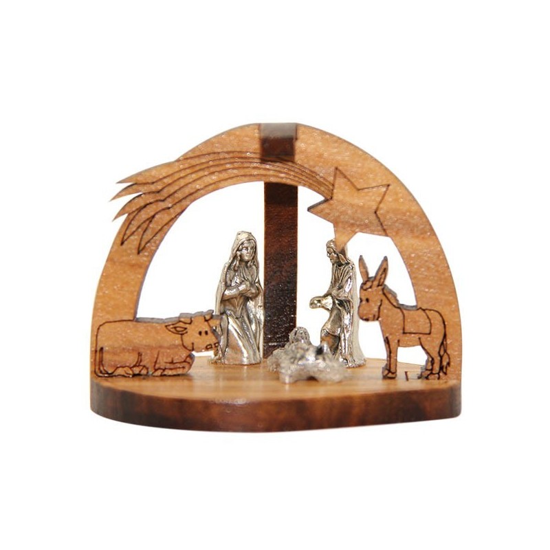 Mini presepio in legno d'ulivo - Presepio in metallo argentato