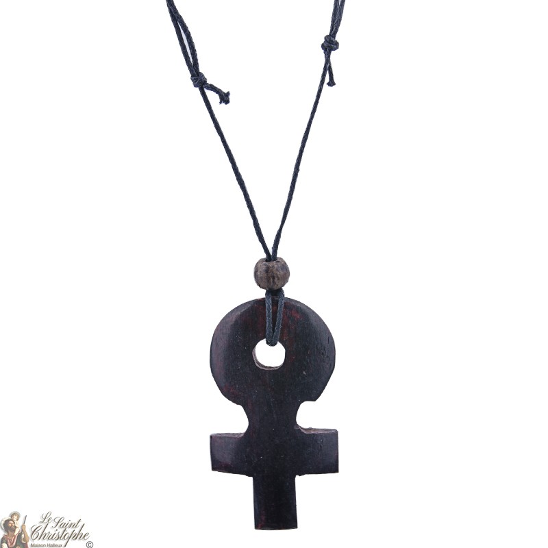 Koord collier met houten kruis