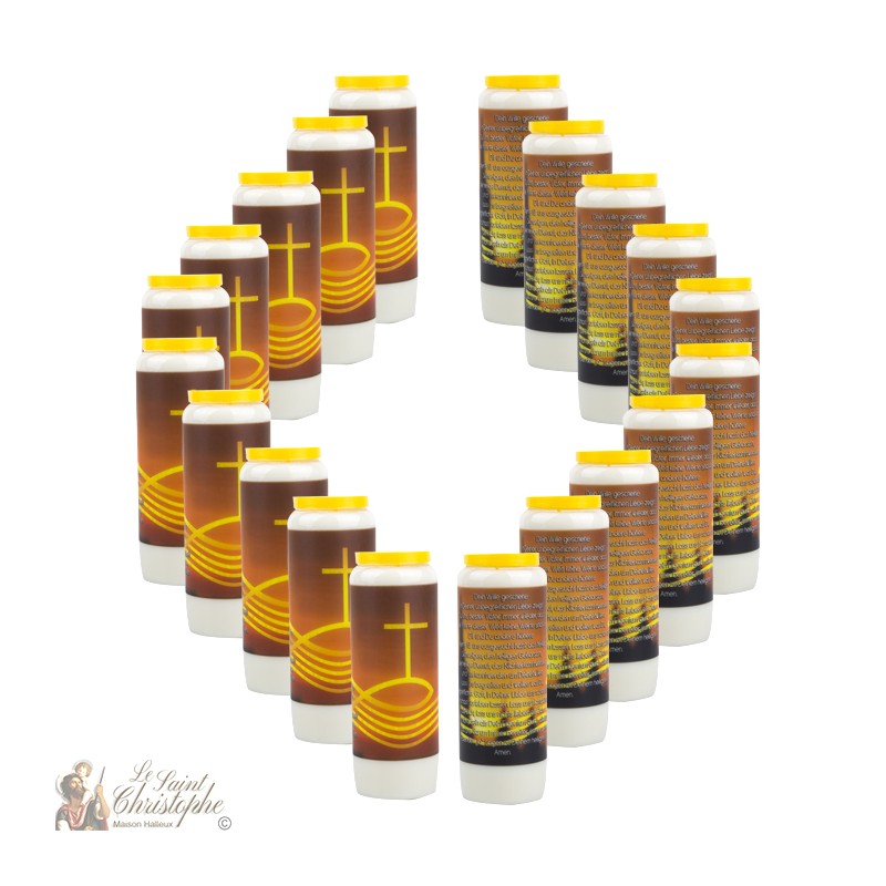 (20 neutrale noveenkaarsen en 20 stickers zullen in de doos zitten)