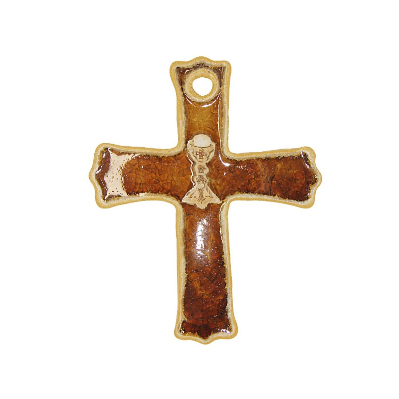 Kruis met bruin geglazuurde terracotta kelk volledig met de hand gemaakt. Onze vakman uit Venezuela heeft dit model ondertekend.