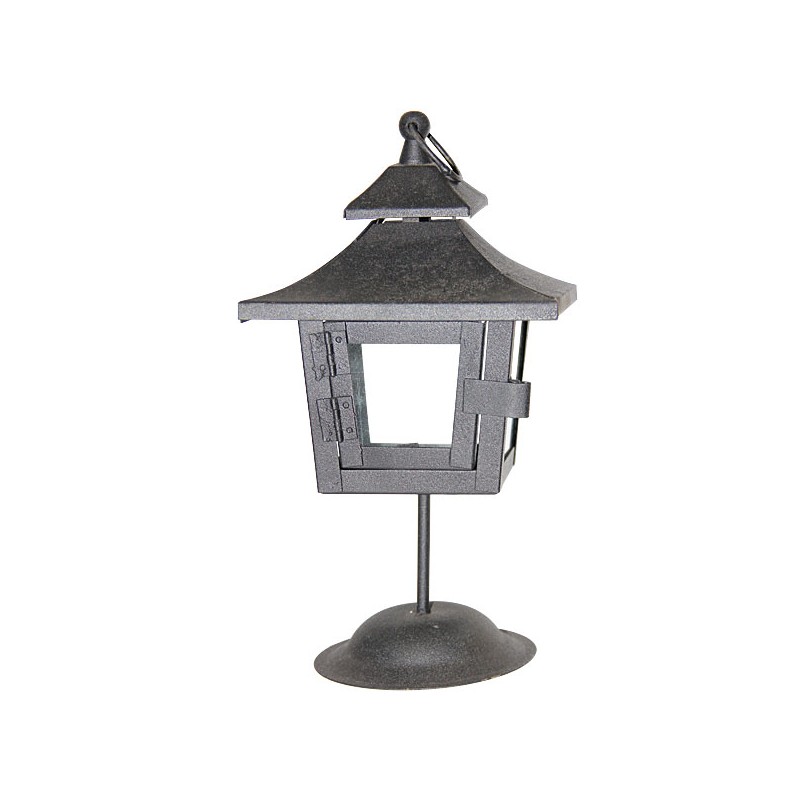 Lantaarn op zwarte smeedijzeren standaard, met een klassieke en sobere stijl. Aan de binnenkant past een waxinelichtje. Een ring aan de bovenkant maakt het mogelijk de lantaarn op te hangen of op de grond te laten staan. Hij kan buiten worden geplaatst, maar wij raden u aan hem te vernissen voor een langere levensduur van de lantaarn.