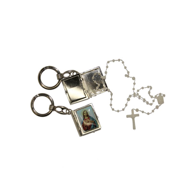 Sleutelhanger Heilig Hart van Jezus kleine doos met rozenkrans