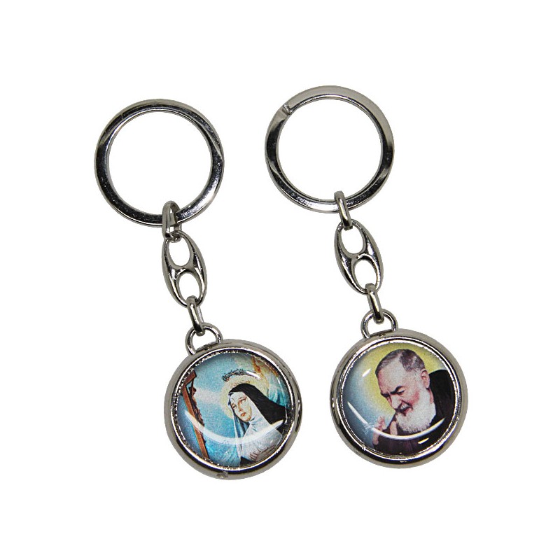 Sleutelhangers van St. Rita en St. Padre Pio - Rond - Zilver