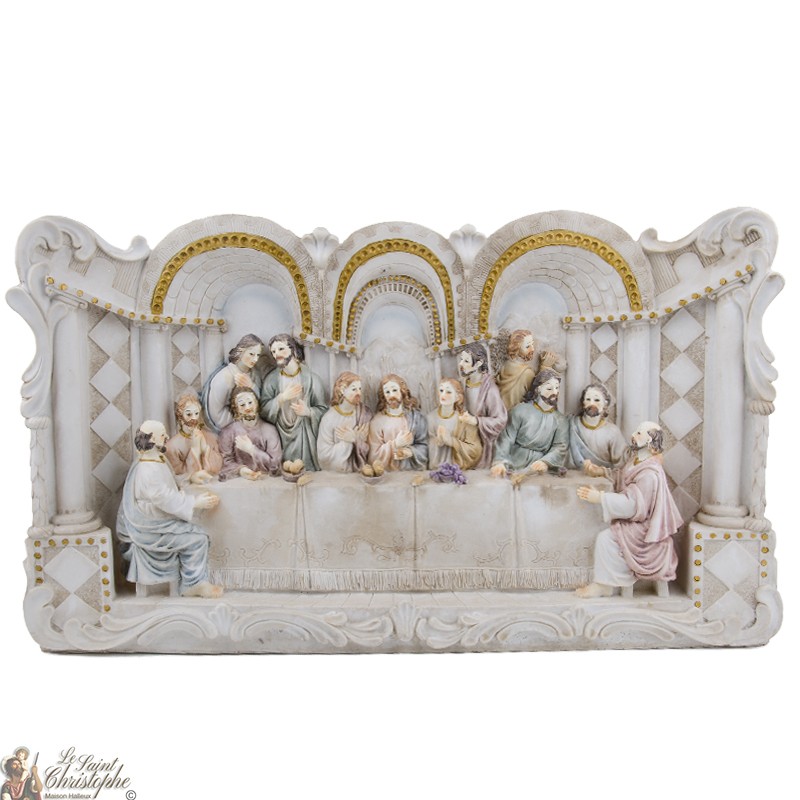 Mooie voorstelling van het Laatste Avondmaal in gekleurd hars.