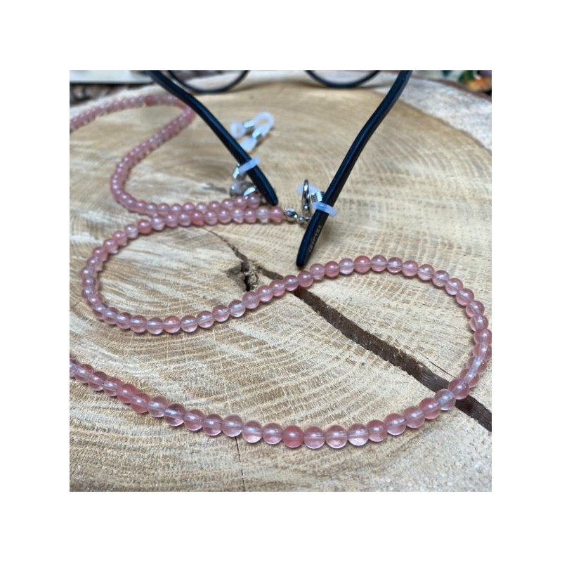 Dit brillenkoord is een chique en praktisch accessoire. Praktisch om je bril op te houden zonder hem te hoeven dragen, chique dankzij de rozenkwarts kralen, een fijne steen die in de lithotherapie bekend staat om zijn deugden.