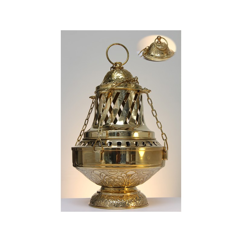 Zeer grote wierookvat voor de mis, met de hand bewerkt, zeer mooi afgewerkt, met een groot volume.